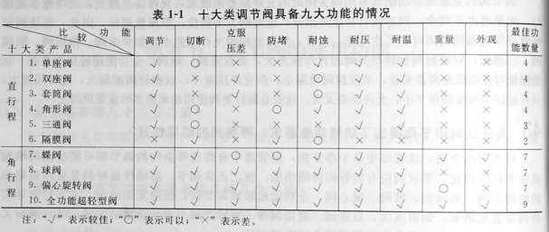 48、十大類調節閥中每一種閥具備九大功能的情況如何?